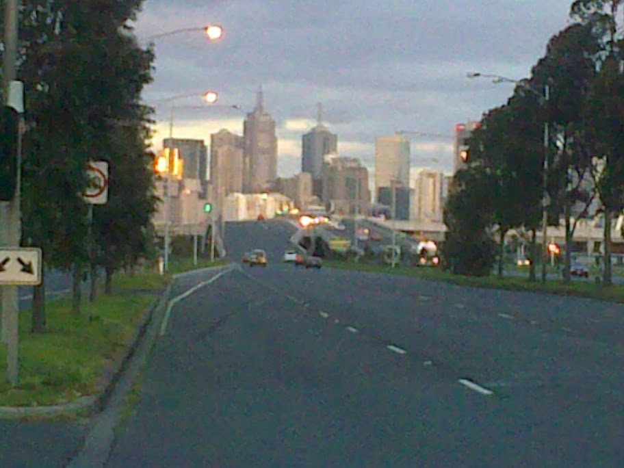 The location is Footscray Rd heading into the city... where a bridge crosses a railway line.
