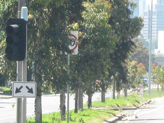 This picture shows Footscray Rd from the left lane (middle) taken from quite close but illustrating that the sign is obscured: